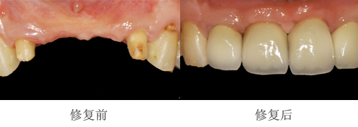然后进行了烤瓷冠修复,以下为治疗前后对比图:
