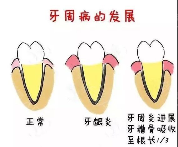 如果仅仅是为厌氧菌的爆发引起,没有明显的牙龈萎缩现象,如牙齿松动不严重,牙槽骨未被吸收,牙根无明显牙结石,这是轻度的牙周炎,容易好转控制。反之,尤其出现了龈下的牙结石,牙石从牙根长进牙龈里面去了,需要刮治的这是重度牙周炎,如不及时治疗,离掉牙的结果就相差不远了。